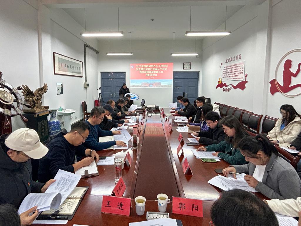 为深入学习贯彻习近平新时代中国特色社会主义思想,进一步推进全面从严治党向基层延伸,切实提高基层党建水平和质量,机械与汽车工程学院党委于1月10日下午在汽车实验楼408会议室召开2023年度党支部书记履行全面从严治党主体责任和抓基层党建工作述职评议会,党委常委、副校长李长河,组织部组织员办公室副主任东忠方列席会议,学院班子成员、党支部书记参加会议。学院党委副书记董虎主持会议。