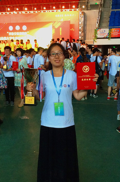 来自机械工程学院材料成型及控制专业132班的陈冉,本科前三学年总评成绩在本专业(同年级)排名为第一名,连续三年获得“优秀学习标兵”称号.在大学生活中一直担任班级团支书的她,积极参与策划团支部特色活动,参与答辩获得第一名的好成绩,并且为班集体赢得“标兵团支部”、“先团支部”等荣誉,多次获得“优秀学生干部”称号.201510,她荣获得了全国大学生数学建模竞赛山东省一等奖;同年12, 荣获“青岛市一星级志愿者”称号;20161,参与 "调研山东",凭借《关于现阶段农贸市场基本情况的调查》荣获山东省二等奖; 20164, "第十三届山东省大学生机电产品创新设计竞赛",荣获山东省一等奖,并获得特别奖学金"泰汽奖学金";20167,"第七届全国大学生机械创新设计大赛",荣获国家一等奖,并且拥有多项专利;20173月获得山东省优秀毕业生荣誉称号.