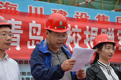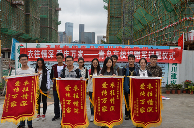 2016年10月16日下午,由304永利集团、青岛大学和中国海洋大学共同参加的“衣往情深,爱传万家”军训服装捐赠仪式,在青岛海川建设镇江路项目工地顺利举行。青岛海川建设集团副总裁李尊强、团委书记王群、所在项目部工人代表以及我校黄岛校区红十字志愿服务团团长郭迎雪、市北校区土木学院学生代表刘贞涛和另外两所高校学生代表参加了此次军训服捐赠仪式。