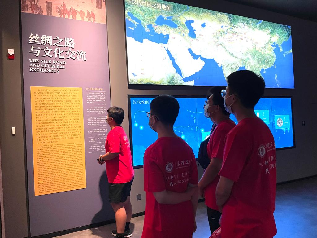 新疆博物馆是丰富的爱国主义教育基地,在加强民族团结、传承中华文化等方面发挥着重要作用。实践团踏入新疆维吾尔自治区博物馆之后,“共有的家园——铸牢中华民族共同体意识”主题陈列展首先映入眼帘,该展由“共拓中华疆域”、“共书中华历史”、“共创中华文化”、“共铸中华之魂”四个篇章构成,再现了新疆各族人民在漫长的历史长河中奋斗拼搏、共建家园的精神面貌。实践团成员们在此深深地体会到,一部中华民族史,就是一部各民族交融汇聚成多元一体的辉煌历史。