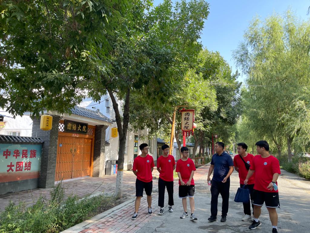 昌吉回族自治州玛纳斯县兰州湾镇八家户村是县民族团结示范点,荣获“全国乡村治理示范村”和“中国美丽休闲乡村”称号。实践团在兰湾镇副镇长张海涛的带领下走进八家户村,一排排徽派农家院落映入眼帘,笔直的柏油路四通八达,家家户户的庭院干净整洁,菜园里一派生机勃勃的景象。