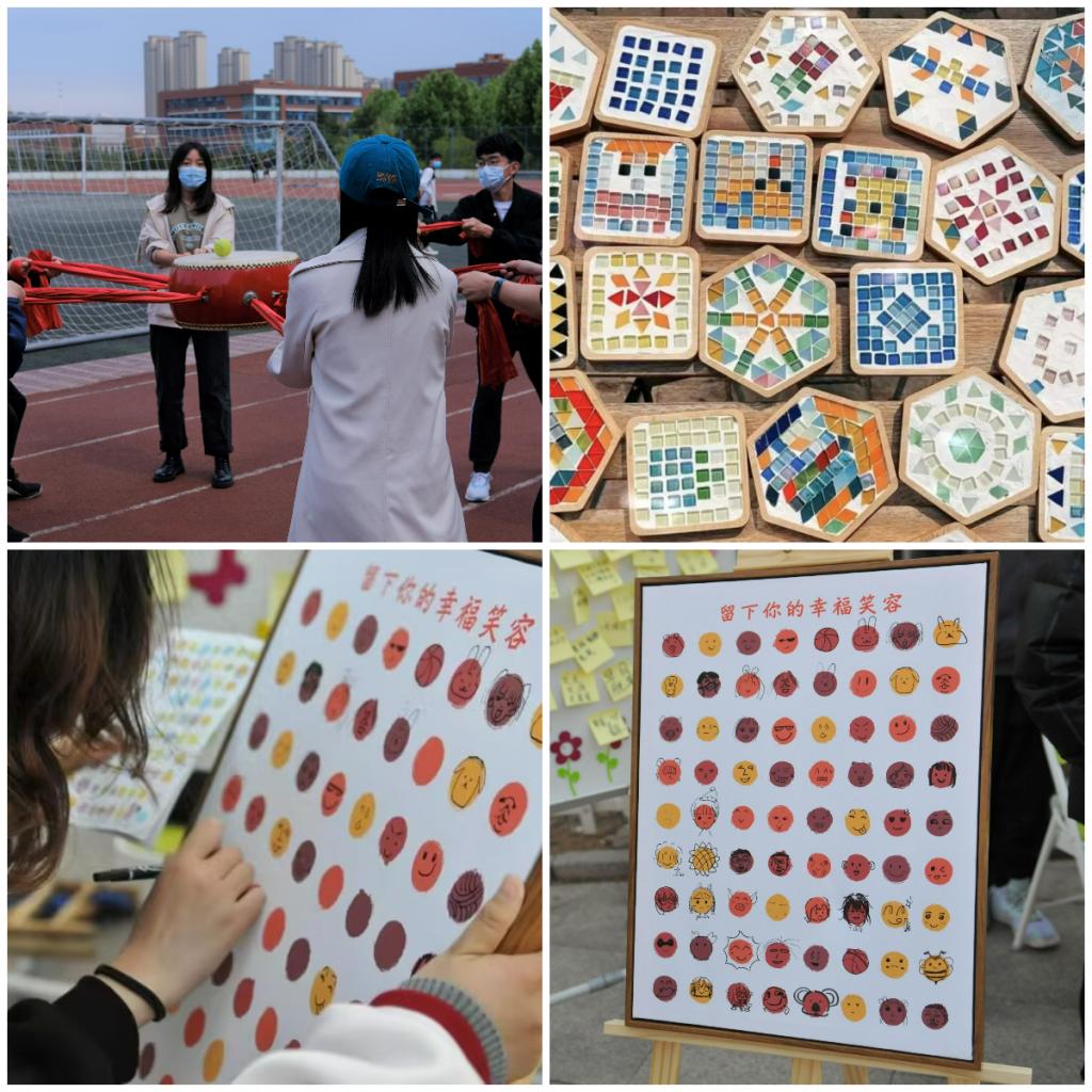 回忆70年,体验幸福。为更好的帮助学生舒缓压力,提升幸福指数,活动现场准备了“幸福测试”“幸福手作”“同心垫球”等活动,寓教于乐,让同学们体验到活动带来的获得感与幸福感。恰逢70周年校庆之际,在知识竞猜关卡增加了校史校训相关题目,现场气氛十分活跃。打卡体验结束后,志愿者带领同学们在绘板上绘画自己心中认为真正幸福的笑容,表达内心深处满满的幸福。