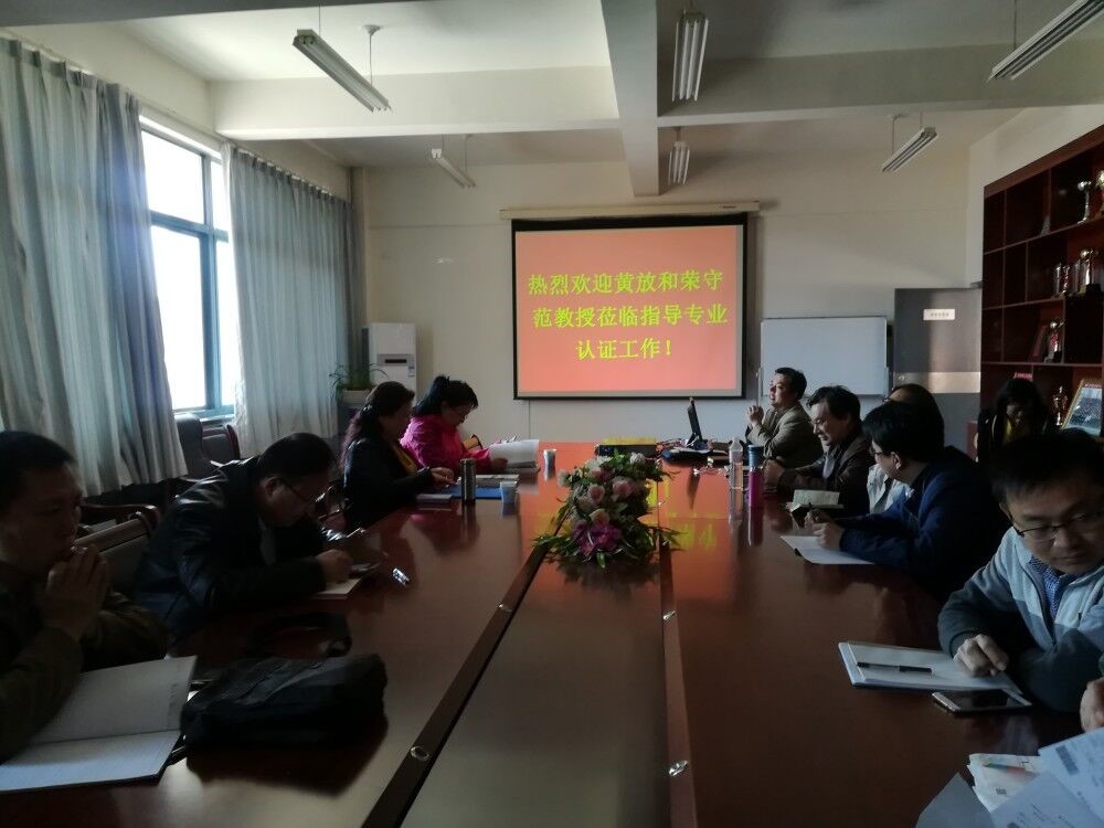 杨勇院长首先代表学院对黄教授、荣教授来我院指导工作表示热烈的欢迎和衷心感谢,并介绍了学院总体情况及各专业设置情况;专业负责人杨建军老师汇报了机械设计制造及其自动化专业认证受理准备情况。