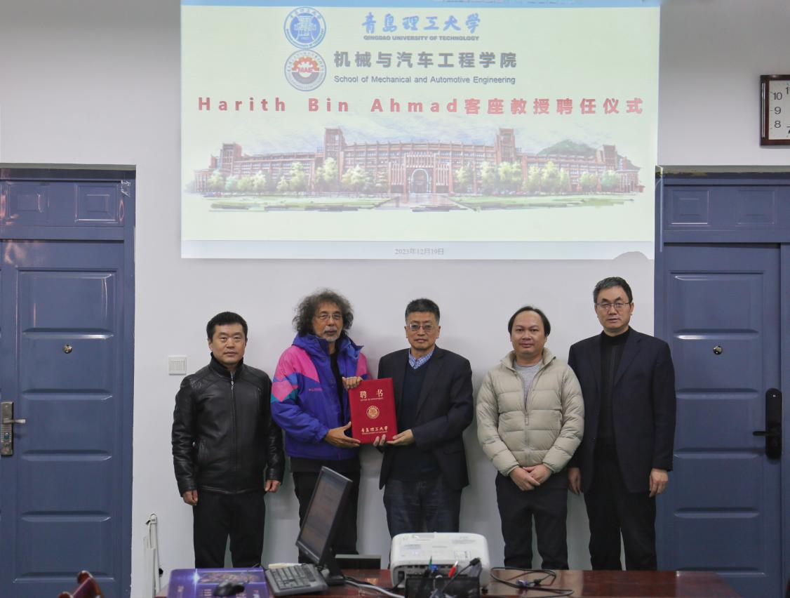 19日上午,聘任仪式在汽车实验楼408会议室举办,机械与汽车工程学院党委书记李忠晓、院长郭峰、部分骨干教师以及学生代表30余人参加。郭峰介绍了学院的基本情况以及在师资队伍、人才培养、学科建设、国际交流等方面开展的工作和取得的成绩。他表示,机械与汽车工程学院一直以来非常重视人才培养和国际交流,积极推进产学研一体化,努力为国家的科技创新和经济发展做出积极的贡献。随后郭峰为Harith Bin Ahmad教授颁发了聘书,祝愿本次合作对“高端激光智能制造技术与装备学科创新引智基地”建设提供重要智力支持,对促进学院内涵式高质量发展发挥重要作用。Harith·Bin·Ahmad教授对学院长期以来取得的成绩表示肯定,表示对受聘为学院客座教授一职感到荣幸,今后将深入推进双方在学科建设、国际交流、学生培养等方面的合作。