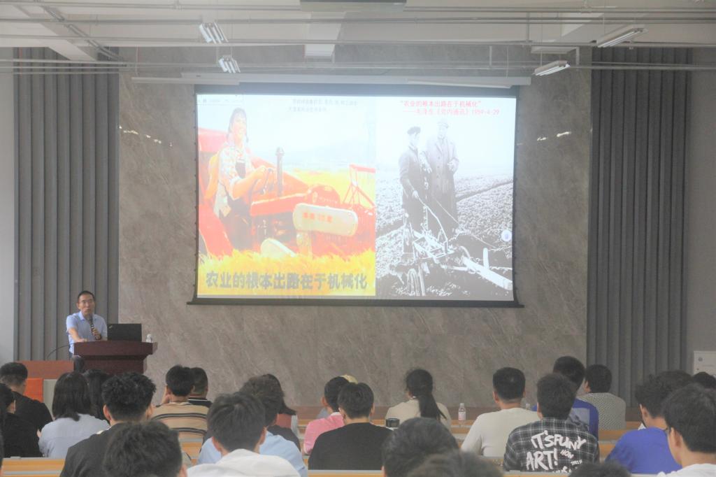 近日,受智能农机装备研发团队和机械与汽车工程学院的邀请,河北农业大学郝建军教授和山东理工大学耿端阳教授来我校分别作“高性能耕整地入土部件失效与性能强化”和“玉米高效低损脱分技术开发研究”研究报告。报告会由机械与汽车工程学院副院长杨发展主持。