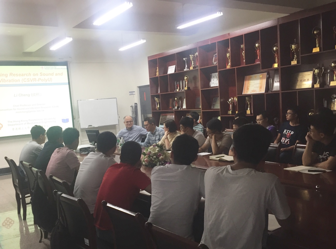 讲座期间,成教授首先对香港理工大学机械工程系的研究团队、研究覆盖领域及研究的科学定位进行了简单介绍;接下来成教授就气动声学与结构声学, 建筑与环境噪声,计算方法,动力学、振动与控制,嵌入式结构健康监测,流体-结构-声音相互作用,一般声学七个方面做了详细讲解;在一番仔细讲解后,成教授还与学生进行了现场交流,并耐心解答同学们提出的相关问题,互动中让学生更加深入到讲座内容中。