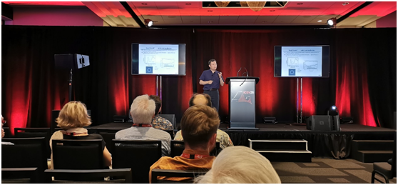 应第26届国际声与振动大会(26th International Congress on Sound & Vibration,7-11 July,2019,Montreal)组委会邀请,2019年7月9日机械与汽车工程学院刘碧龙教授在加拿大蒙特利尔召开的第26届国际声与振动大会做大会主旨报告(Distinguished Plenary Lecture)。报告题目为“Noise Transmission and Absorption of Lightweight Structures: An overview and Experience”,报告时间一小时。大会报告梳理了近十年来国际同行在结构噪声传递和共振吸声结构等方面的进展,并报告了团队在该方向上取得的系列研究成果,得到了与会专家和国际同行的一致好评和认可(图一和图二)。