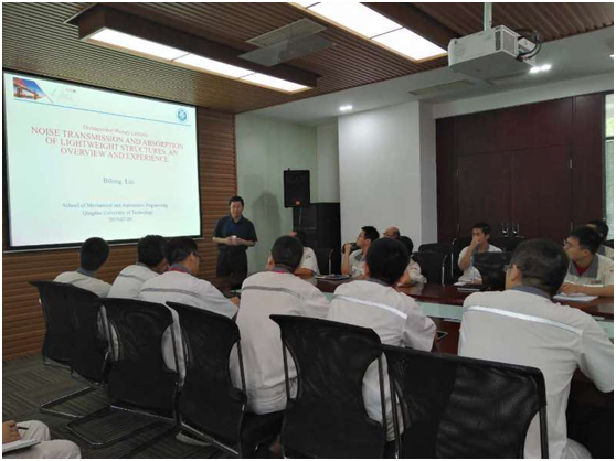 刘碧龙教授曾获得中国科学院优秀百人(2013)、中国科学院特聘研究员(2016)等称号,他曾长期担任中国科学院噪声与振动重点实验室声学材料与结构研究方向学术带头人,承担过包括国家973课题在内的各类科研项目。部分研究成果在战略型海洋装备和大型风洞工程中得到了应用。刘碧龙教授2018年获聘山东省泰山学者特聘教授,组建了声学技术与智能控制科研团队(图三),团队以噪声与振动控制为主线,围绕低频宽带声学材料结构、湍流与结构耦合噪声、主动噪声控制等方向开展研究。在湍流边界层作用下结构振动与声辐射理论、低频吸声结构、主动噪声控制、高性能声学器件、车辆悬架主动控制、疲劳寿命分析等技术方向上形成研究特色。同时,团队积极服务当地企业,与中车四方、海信日立等大型企业建立了合作关系(图四和图五)。(撰稿:李敏,审核:刘碧龙、郭峰)