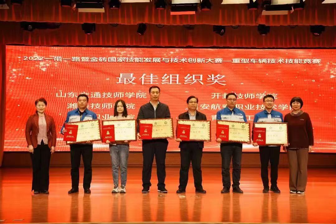 3月28日到4月1日,2022一带一路暨金砖国家技能发展与技术创新大赛之重型车辆技术技能竞赛全国总决赛在山东济南举办。我校潍柴现代产业学院2019级学生孙成群同学在众多选手中脱颖而出喜获一等奖,现代产业学院获得本赛事最佳组织奖。