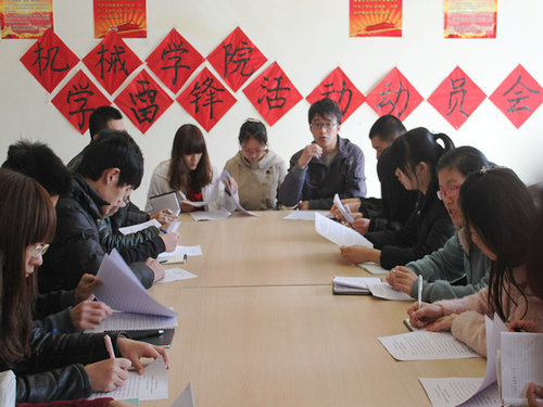 为倡导同学们深入践行“雷锋精神”,3月15日下午,机械学院在嘉陵江路校区学院学生活动室召开了“学雷锋”主题团日活动部署会。12级各班团支书参加了此次会议。会议由学院嘉陵江路校区学生会负责人主持。