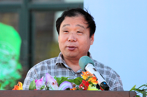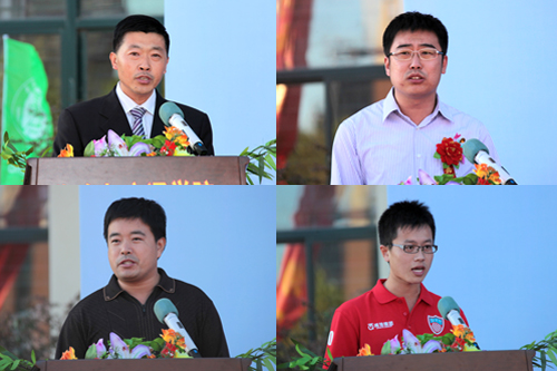 汽车学院院长王丰元主持、青特集团致辞、车队指导老师、队长发言