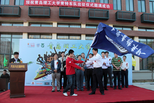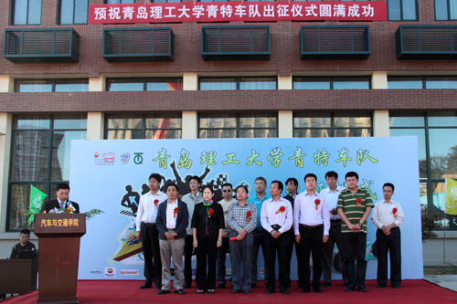校党委副书记杨向荣在仪式上致辞,副校长李东为青特车队授旗,青岛汽车行业协会、青特集团、汽车网、青岛华世通集团、酷熊俱乐部等企业代表一同为新车揭幕,齐鲁晚报、半岛都市报、青岛日报、青岛早报、城市信报、青岛电视台、开发区电视台等媒体出席仪式。仪式由汽车与交通学院院长王丰元主持。我校教务处、学生处、团委、汽车与交通学院相关负责人及两百余名师生参加仪式。