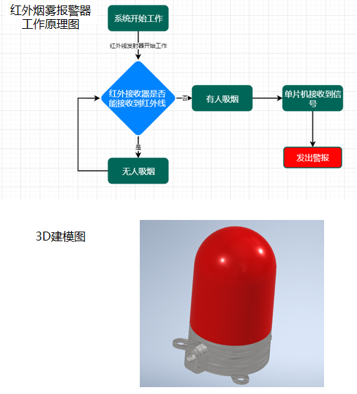 学生党员以实际行动拉起禁烟旗帜,以自身所长建设清新校园。机械182赵子涵带领学生党员结合所学专业及研究课题,设计制作红外线烟雾报警器,目前已完成红外线报警器的三维建模。常用的离子型烟雾探测器采用电离场监测烟雾,该类设计灵敏度过高,在空气中有其它颗粒时容易产生误报现象。红外线发射器及接收器的工作方式打破了离子烟雾报警器局限性,完善了烟雾报警器工作机制当空气中有烟雾存在时,红外线接收器接收到的光线变少,诱发电路电流发生改变,触发LED报警指示灯,并播放禁止吸烟宣传口号,以此劝诫吸烟人员停止吸烟。在无烟日来临之际,学生党员利用课余时间认真准备、刻苦钻研,以专业所长支持禁烟行动,充分展现出机车学子勇于创新、挑战自我和敢于担当的良好精神面貌。