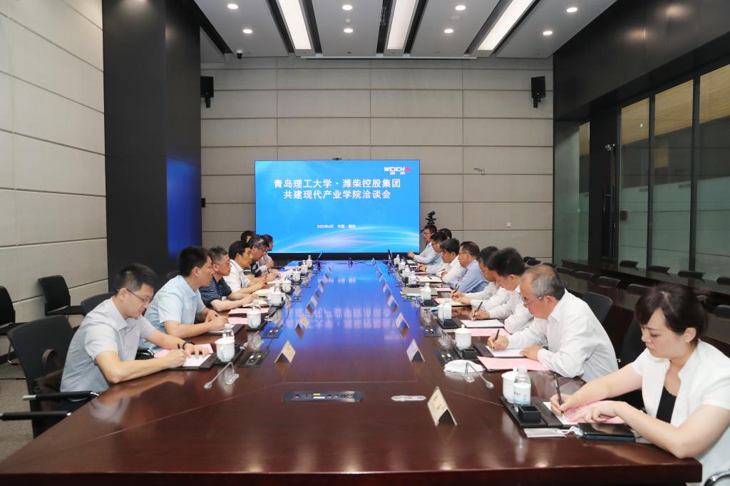 潍坊市产教融合研究院院长田元训、副院长冯秀红,潍柴集团党委副书记、副董事长徐新玉,潍柴集团党委委员、工会主席、潍柴职业大学校长鲁文武,常务副校长钟建民、副校长张东海以及相关部门负责人出席会议。双方就共建现代产业学院进行了深入交流。