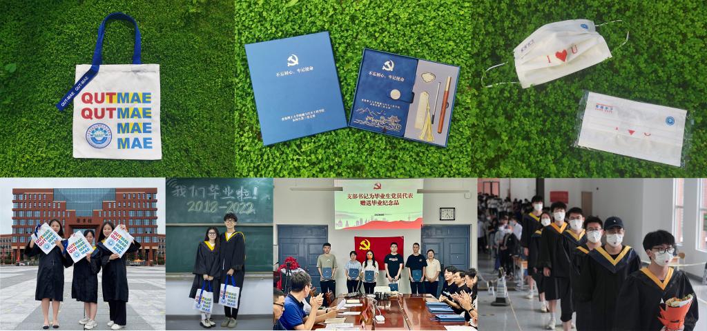 “‘签’手向前,‘袋’爱启程”,赠送一份毕业生纪念礼品。学院党委为毕业生党员定制了党员专属纪念品:一个党员学习记录本、一支笔、两枚印有校徽及院徽的书签,以激励各位毕业生党员坚持学习,牢记党的教诲,立志民族复兴,不负韶华、不负时代、不负人民。学院为全体毕业生定制毕业生专属福袋和口罩——以环保袋为主体设计载体,寓意学院毕业生走出校门步入社会后,能够满载知识和文化,铭记“崇德、博学、致知、力行”的院训,从容走向社会。“理工红”与“机车蓝”相互辉映,代表着学生与学校、学院之间的纽带,整体既成熟稳重又不失可爱,希望他们可以满载青葱岁月里的每一刻时光印记,老师与同学们的真挚祝福,“袋”爱启程。机械181毕业生王琛说:“毕业纪念礼物寓意深刻,饱含了学院对我们的殷切的祝福,我一定会一辈子珍藏!”