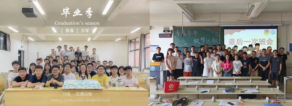 “青漾年华,机梦远航”,开展一次德育班会。毕业前夕,学院全体毕业生在班主任的带领下或通过整理学生集体活动、日常生活、成长进步等照片收集做成视频播放,或通过PPT展示,或通过发放入学时的心愿卡等方式带领同学们回顾自己大学四年的点滴生活,谈感悟诉衷肠,毕业生纷纷表达对学院和学校由衷的祝福和感谢。