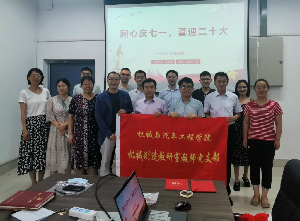 为庆祝中国共产党成立101周年,迎接党的二十大胜利召开,机械与汽车工程学院机械制造教研室教师党支部开展“同心庆七一,喜迎二十大”主题党日活动,支部全体党员同时以线上及线下形式参加活动。