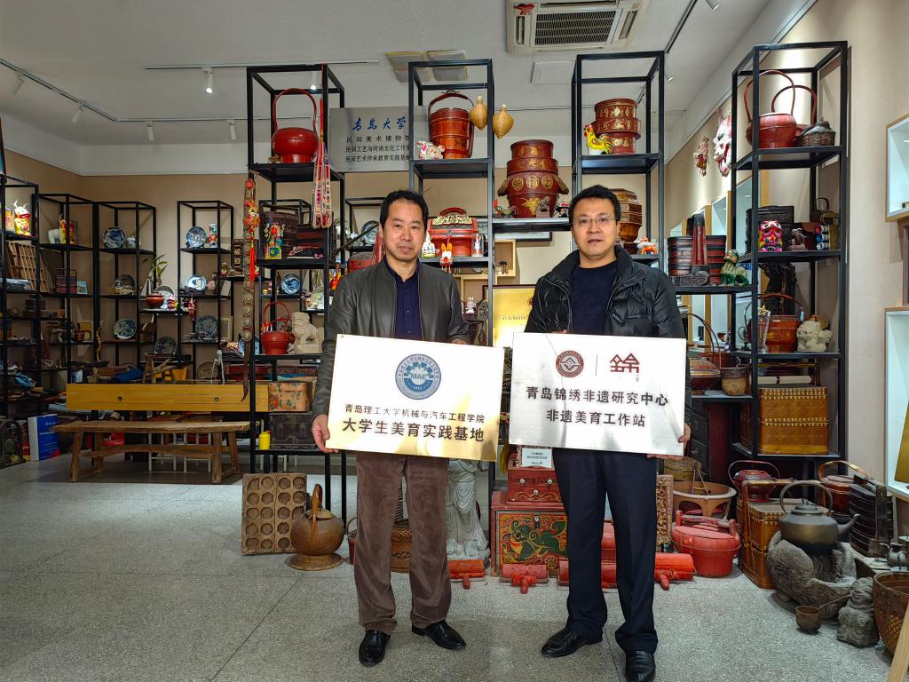 2月23日,青岛大学非遗中心主任、美术学院侍锦教授,304永利集团机械与汽车工程学院党委副书记、副院长董虎在青岛大学民间工艺美学馆为机械与汽车工程学院美育实践基地、青岛锦绣非遗研究中心非遗美育工作站揭牌。