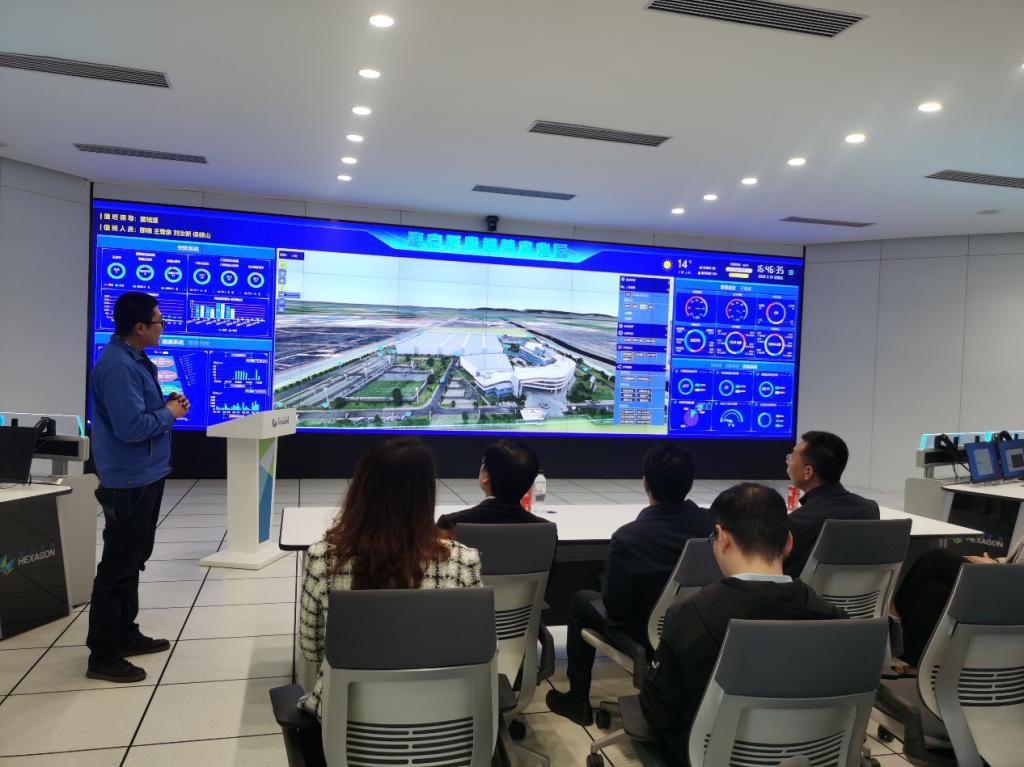 牟永川一行在海克斯康教育产业总经理廖鲁等人的陪同下,先后参观了“双智”展示空间和智慧园区运营中心,全面了解了公司的企业文化、主营产品和技术实力,随后,双方就产学研合作、学生就业创业等方面进行了座谈。