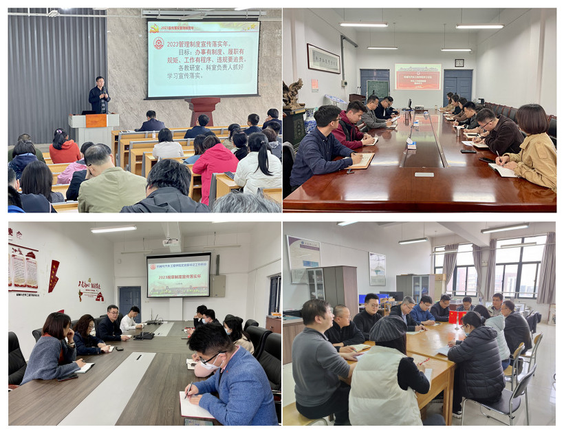 教师分层广泛学。4月份,学院党委召开了全体职工大会,布置“规章制度宣传落实年”任务,各科室、教研室按照学院部署要求,组织教师分层分级广泛开展学习。4月11日下午,学院学工办召开学工论坛,党委副书记董虎主持会议,全体辅导员集中学习学生工作规章制度,对相关制度进行领学解读,研讨宣传方法。董虎表示学院辅导员作为学生管理的核心团队,要以本次学习活动为契机,强化育人理念,更新管理举措,加强责任担当,努力做好学生成长成才引路人,同时他对在学生中贯彻学院制度宣传落实要求作了进一步强调,明确了学生学习的推进方案。各党支部结合4月支部组织生活指导意见,通过支部党员大会、主题党日活动等形式,首先围绕科研资金规范使用、规范签订合同、师德师风建设、兼职创新创业、仪器设备使用等加强学习,有计划有步骤深入推进制度宣传落实活动,最终要实现“办事有制度、履职有规矩、工作有程序、违规要追责”的目标,建设规范有序、风清气正的良好学院风气。