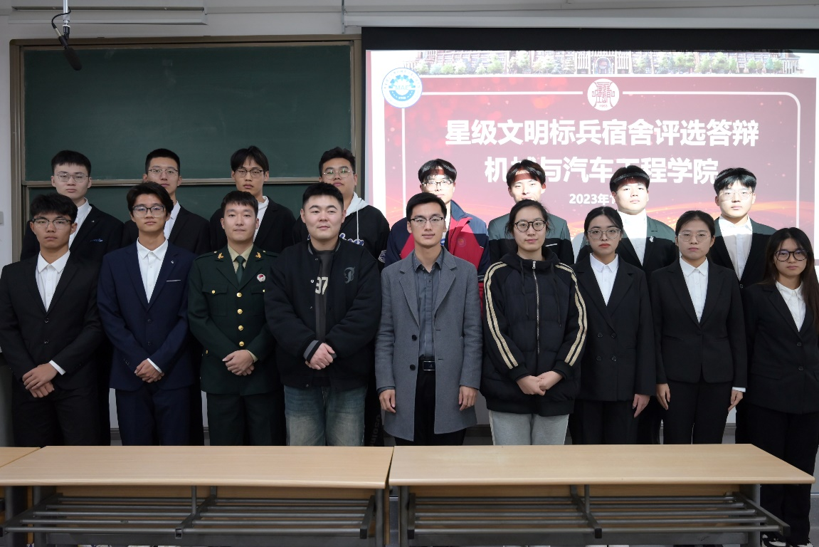 为推进学院“一站式”学生社区建设,选树一批优秀示范宿舍,提升学生公寓文化建设水平和育人质量。11月27日,机械与汽车工程学院在2号教学楼203教室举办星级文明标兵宿舍评选答辩活动。辅导员张凤波、管廷晋与学生会干部、公寓自管会部长担任本次答辩的评委。