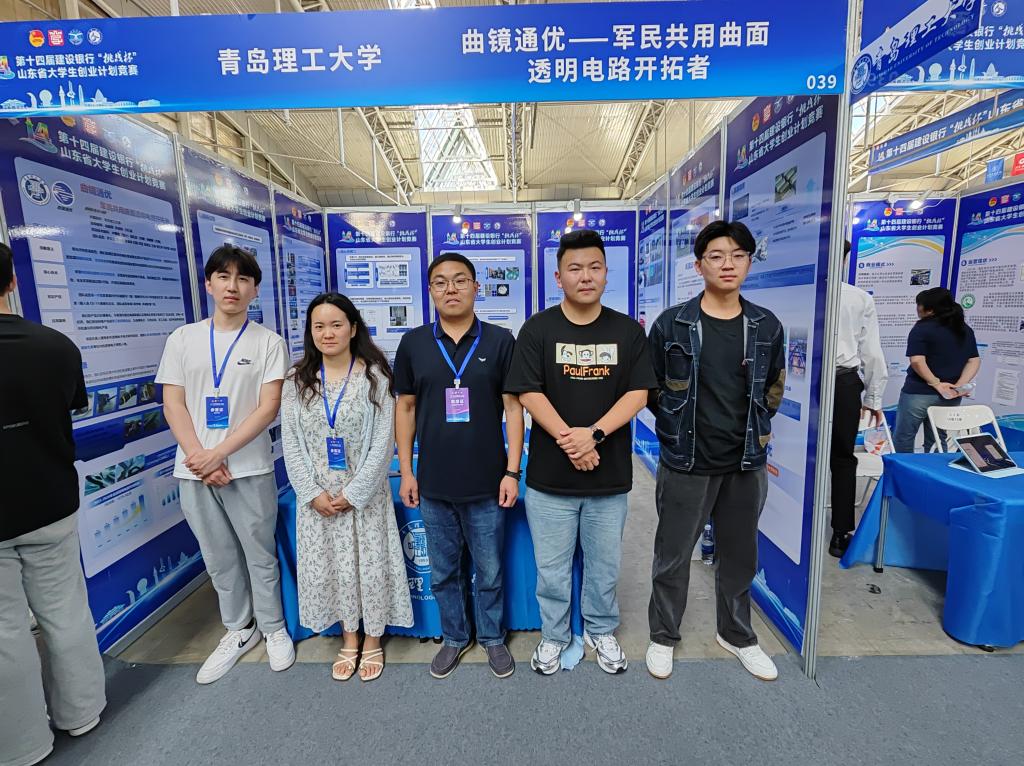 本次竞赛以“智汇齐鲁,青创未来”为主题,聚焦新质生产力发展方向,分为科技创新和未来产业、社会治理和公共服务、文化创意和区域交流合作、生态文明建设和绿色低碳发展、乡村振兴和农业农村现代化5个赛道,来自全省58所高校218支参赛队伍入围终审决赛。赛事启动以来,学院团委广泛宣传、精心组织,广大师生踊跃参与,经过院赛初选,校赛评审,邀请校内外专家进行精心指导,最终《曲镜通优-军民共用曲面透明电路开拓者》(团队成员:孙文正、周明伟、董春雨、刘醒、郑莹、周君仪、王瑞、李红珂、李政豪、徐昭玥。指导教师:朱晓阳、兰红波、杨建军)和《检微知触——量子点压致发光检测引领者》(团队成员:董浩宇、于永安、刘思宇、董克轩、郭春江、李自颖、巨斌、丁梓健、刘玉婷。指导教师:李忠晓、郭峰、王成)两个项目获得省级金奖。