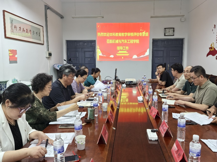 现场检查工作由苗吉军副校长主持,学院班子成员、专业负责人等参加了会议。苗吉军介绍了本次检查的目的、要求、日程安排。他强调,机械与汽车工程学院是学校的骨干学院之一,也是本次教育教学审核评估的重点学院之一,要以高度的责任感和工作态度对待评估准备工作,以高标准迎接正式评估,通过本次现场检查,聚焦突出问题,凝练机车特色,推动自评提升。
