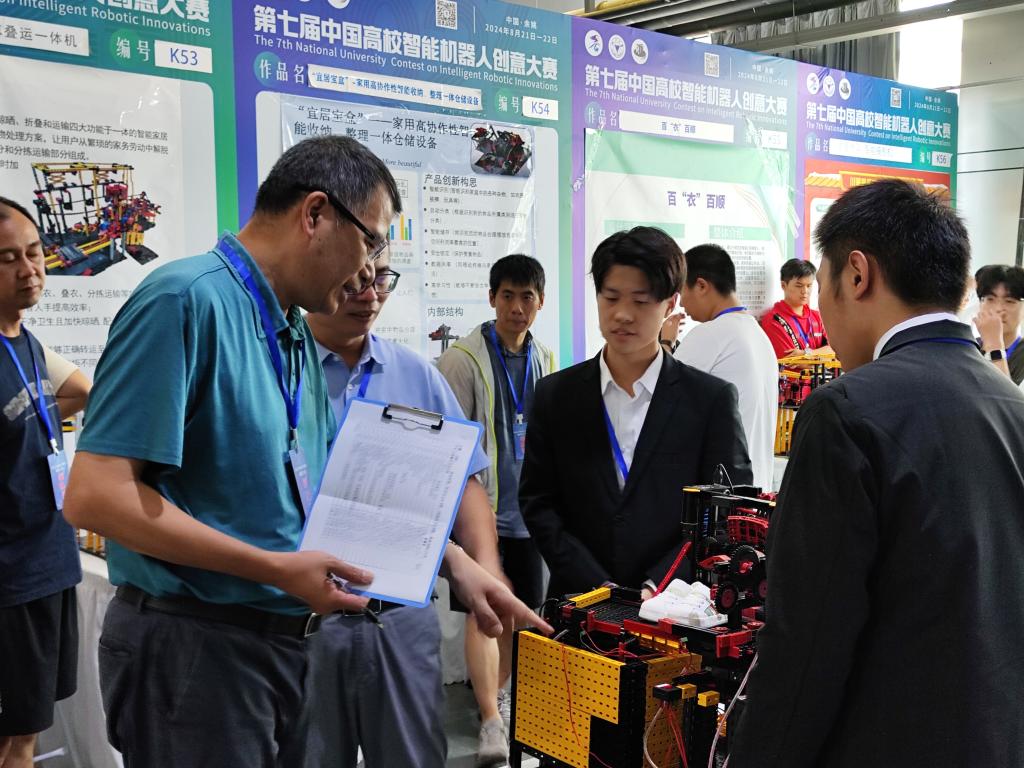 在第七届中国高校智能机器人创意大赛主题赛中,我校学生的参赛作品主要集中在模块化产品搭建组,经过现场展示与答辩,“家庭快餐——家用式餐具清洗及食材预处理集成一体机”与“味界智绘师——智能果蔬沙拉机”两项参赛作品获得国赛一等奖,“一种基于机器视觉自主学习的果蔬洗切一体机器”等三项参赛作品获得国赛二等奖。“全域洁净——面向狭窄场地的多轴轮式地面清洁机器人”等四项参赛作品获国赛三等奖。
