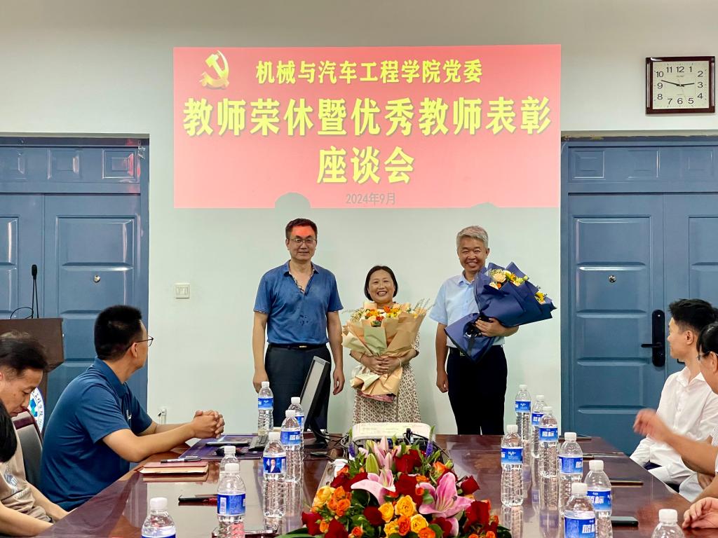 时维九月,桃李沁芳,第40个教师节如约而至。为深入贯彻党的二十大精神和习近平总书记关于教育的重要论述,大力弘扬教育家精神,机械与汽车工程学院在汽车实验楼408会议室举办教师荣休暨优秀教师表彰座谈会。学院党委书记李忠晓、副书记兼副院长董虎、副院长王进,荣休教师姜培刚、李志文以及部分优秀教师代表参加,会议由董虎主持。