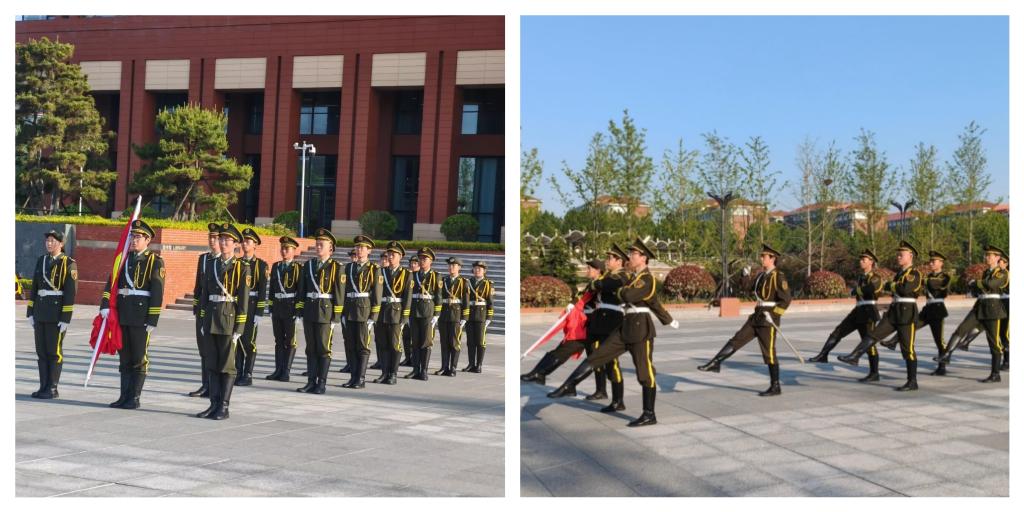 晨曦微露之时,国旗护卫队成员身姿挺拔,迈着坚定有力的步伐,护卫着鲜艳的五星红旗,昂首阔步迈向升旗台。激昂雄壮的《义勇军进行曲》点燃了每个人心中的爱国情怀。900余名师生整齐列队,怀着深深的崇敬之情,向国旗行注目礼,齐唱国歌,朝阳与国旗同步升起,在晨风中猎猎招展。