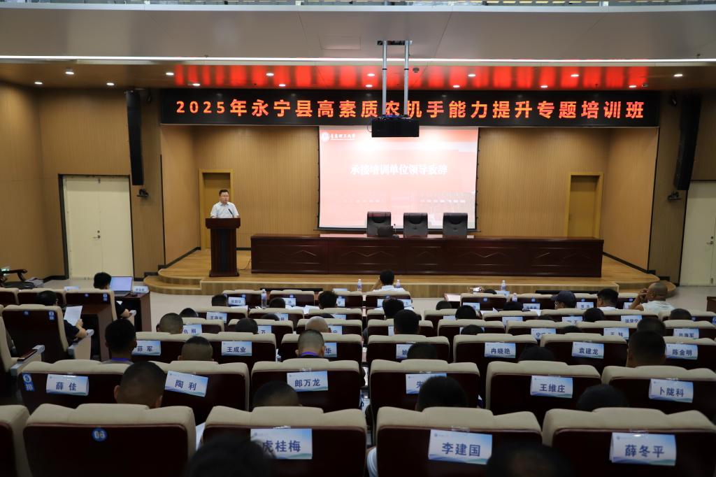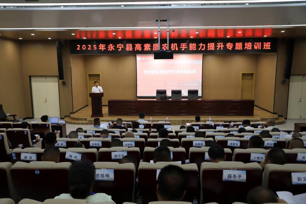 为认真贯彻落实习近平总书记关于乡村人才振兴的重要指示,提升农民技术技能水平、产业发展能力和综合素养,8月20日,由永宁县农业农村局主办、304永利集团承办的2025年高素质农机手能力提升专题培训班成功举办。304永利集团教务处副处长张立伟,机械与汽车工程学院副院长杨发展、郭阳,永宁县农业机械安全监理站工程师吕爱琴,以及培训讲师代表与参训学员共同参加了此次开班仪式,开班仪式由郭阳主持。