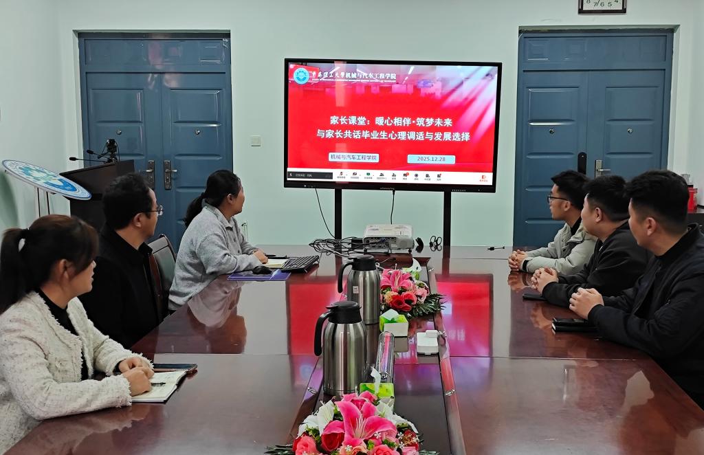 为进一步深化家校协同育人机制,精准对接考研后毕业生心理调适与多元发展需求,凝聚育人合力,为学子成长保驾护航,12月28日,机械与汽车工程学院以线上形式举办“暖心相伴・筑梦未来—与家长共话毕业生心理调适与发展选择”专题家长课堂。学生处心理中心主任刘安庆、学院党委副书记董虎,学院团委书记、学工办主任徐卫晓,学院征兵工作负责老师徐晓东,全体毕业生辅导员及2026届毕业生家长齐聚云端,共话学子成长与未来发展。会议由毕业生辅导员代莉主持。