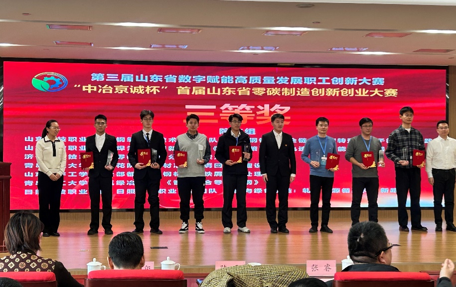 本次大赛聚焦零碳制造与产业智能转型,是山东省推动工业领域绿色低碳高质量发展的重要举措之一,吸引了全省众多高校与企业团队的积极参与。学校两支参赛队伍紧扣大赛主题,立足产教融合实践平台,将专业理论与低碳技术、智能制造相结合,参赛项目紧密对接产业实际需求,体现了鲜明的创新性和应用潜力,获得了评委组的一致认可。