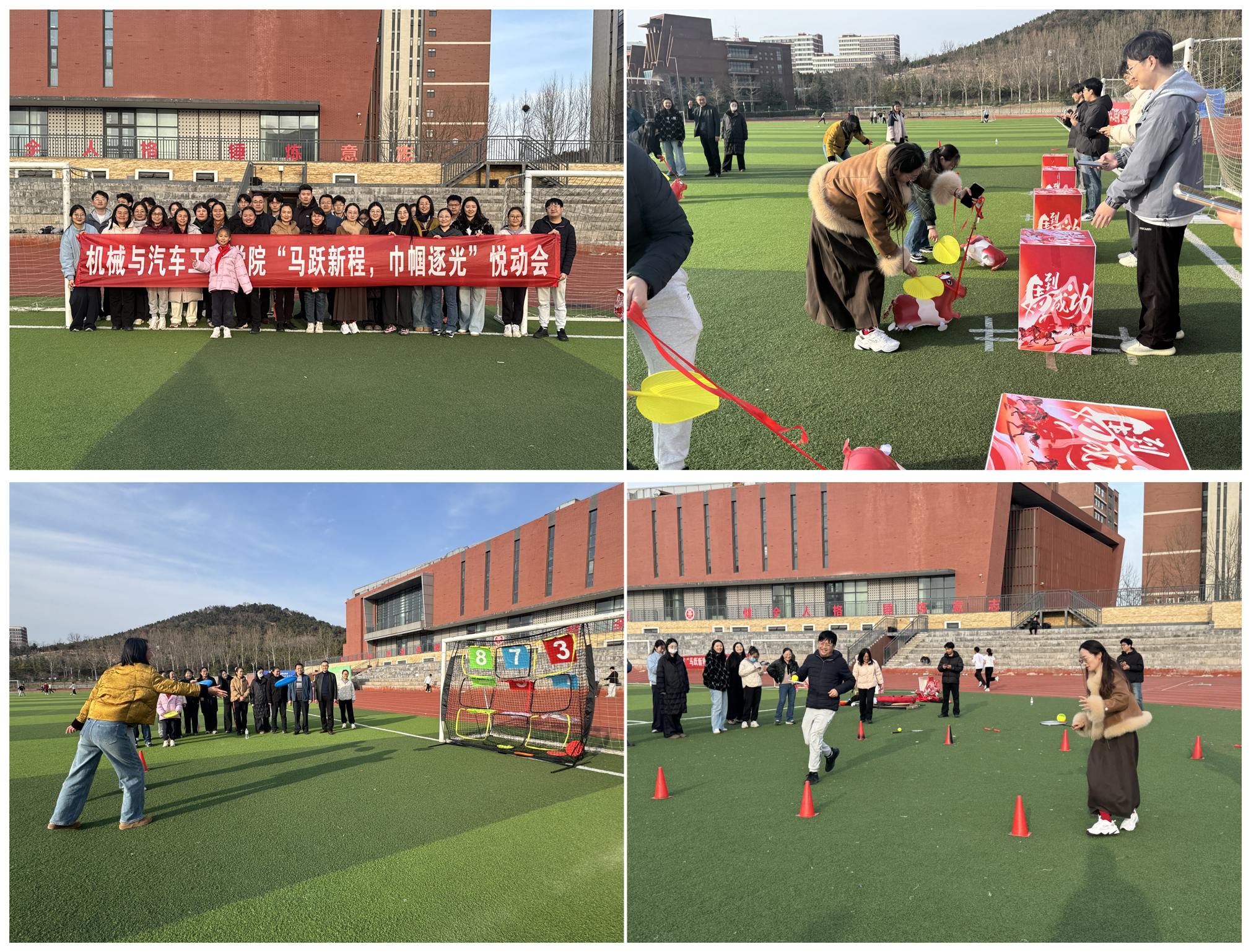悦动身心,活力绽放。3月18日下午,学院组织开展“马跃新程·巾帼逐光”悦动会,共设置“马到成功”赶马入厩、“策马扬盘”飞盘九宫格、“快马加鞭”综合耐力赛等3项比赛,选手们纷纷化身“全能赛手”,在赛场上尽情展现速度、技巧与竞争力。快乐的趣味赛事让全体教师舒展心情,也展现了活力四射的魅力风采。